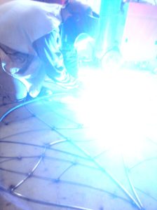 The series of insect sculptures reflect a fascination with the armour-like qualities of these creatures. Overlapping sections of steel, often beaten on an anvil to give texture and form, and tempered to introduce colour, are welded to build their structure.